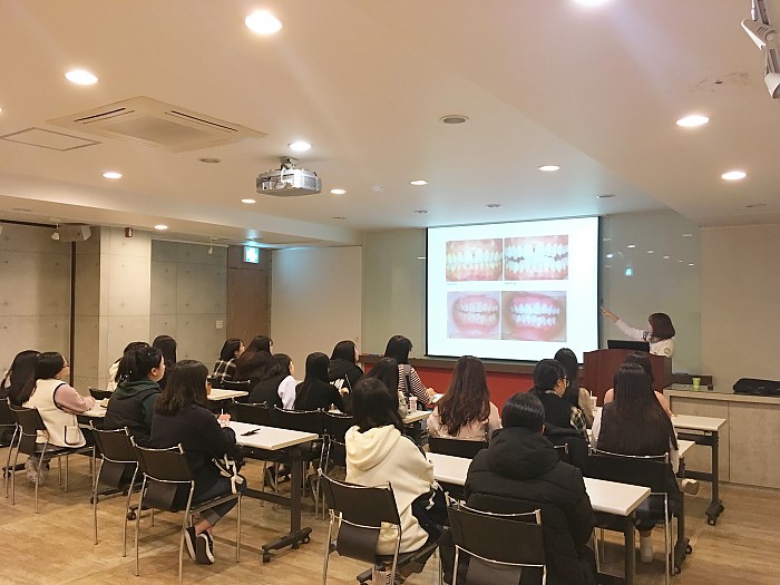남목고, 화봉고, 방어진고, 효정고등학교 학생 19명이 직업체험학습을 위해 동구CK치과병원을 방문했어요!11월 17일 오전 10시부터 2시간 동안 진행된 이번 직업체험학습은 동구CK치과병원 예방팀에서 도와주셨는데요~ 정혜선팀장님이 치과에서 일하는 치과의사, 치과위생사, 치과기공사 등 여러 직업군에 대한 소개 및 올바른 입속 관리 방법에 대해 먼저 배워보았구요. 2층 진료실로 내려가 치과위생사 박지우 선생님과 함께 학생 한 명 한 명의 치태를 채취한 후 위상차현미경을 통해 실제 입속 세균에 대해 알려주는 시간을 가졌어요.