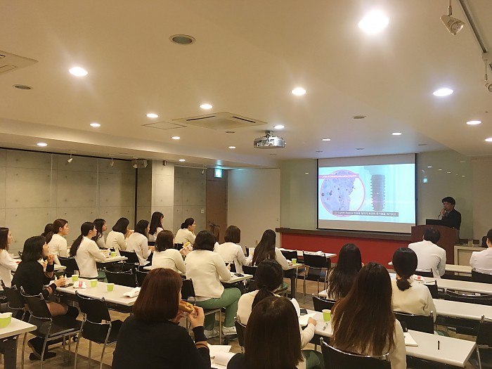 2월 19일 화요교육 시간에는 UV임플란트에 대한 디오임플란트 노원기 이사님의 특강이 진행됐습니다.UV임플란트란 임플란트 수술 전 자외선(UV) 처리를 통해 임플란트와 뼈가 빠르고 안정적으로 자리잡을 수 있도록 처리하는 방식의 임플란트를 말하는데요, *친수성을 높여 임플란트 식립 후 골유착 속도가 빠르다는 UV임플란트의 특징들과 함께 UV임플란트를 사용하기 위한 준비 방법 및 주의할 점들에 대해서 자세히 배울 수 있었답니다.