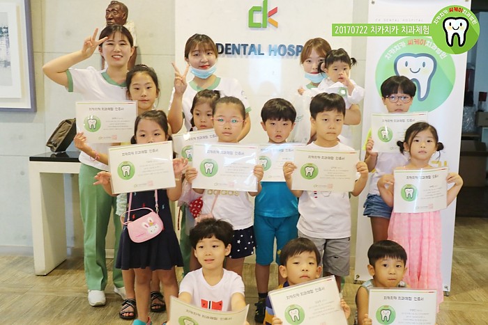 오늘(7월 22일 토요일) 오전 10시! 동구CK치과병원에서 현대백화점 문화센터를 통해 사전에 신청받은 어린이들을 대상으로 여름방학맞이 치카치카 치과체험이 진행되었어요!!이번 체험에는 형제, 자매, 남매 등 가족끼리 많이 참여해주셨는데요~