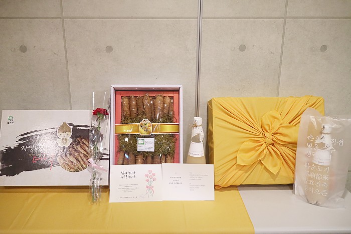 이번 어버이날 깜짝 선물은 청정 고장 화순에서 무농약으로 재배한 더덕 선물세트! 전통 방식으로 손수 직접 빚은 복순도가 생막걸리, 그리고 카네이션이에요~