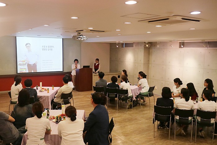 CK치과병원에 대한 소개 영상을 시작으로 CK치과병원만의 교육 프로그램과 복지 제도 등을 조미영 진료부장님께서 직접 설명해주셨어요. 이어 김기형 병원장님의 인사 말씀 후 정현숙 코디네이터 팀장님이 직접 부모님들을 모시고 우리 딸의 일터를 둘러보실 수 있도록 원내 투어를 했구요, 마지막으로 가족분들을 모시고 따님이 직접 해드리는 구강관리 시간을 가졌답니다. ^^