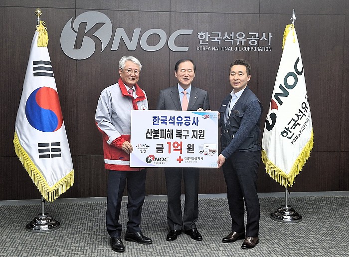 김동석 사장은 "갑작스런 대형 산불로 막대한 피해를 입고 고통받고 계신 지역 주민들께 위로의 말씀을 드린다"며 "석유공사 임직원이 자발적으로 마련한 이번 성금이 피해를 입은 이재민 분들께 조금이나마 보탬이 되기를 바란다"고 밝혔습니다. 이 자리에서 채종성 대표원장님은 “에너지를 책임지는 공공기관의 큰 결단은 사회적 연대의 좋은 본보기가 됩니다. 적십자는 여러분의 소중한 뜻을 정직하게 이어가겠습니다.” 라는 말로 감사와 책임을 함께 전하셨습니다.