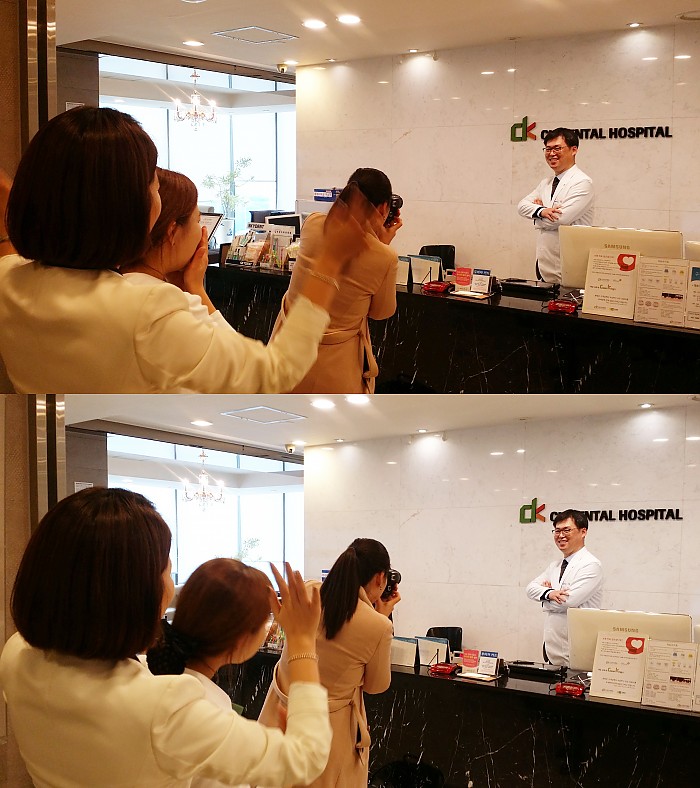 보다 자연스러운 표정의 병원장님 모습을 담기 위해 김유리 선생님과 교정과 엄희경 선생님이 도와주셨어요!