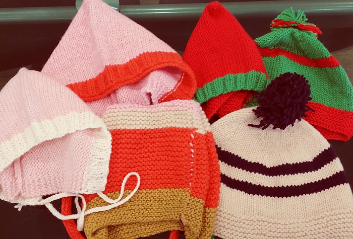 지난 겨우내 열심히 한 땀 한 땀 뜨게질해서 다양한 색상의 모자를 완성(!!)
