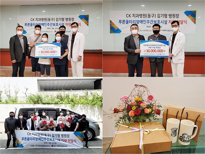 동구 CK치과병원 김기형 병원장님께서 사회복지공동모금회를 통해 3천만원의 기부후원금을 전달, 이를 기념하기 위한 기부후원 전달식을 2021년 8월 27일 금요일 동구 CK치과병원에서 진행했습니다.