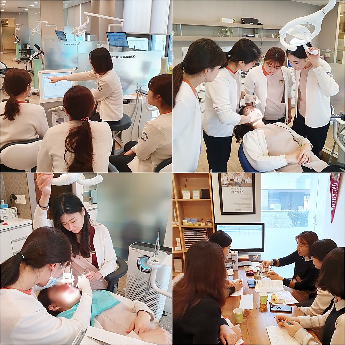 2월 11일 오늘 화요교육은 Scan, Imp 조별 실습과 치주치료 술식의 이해에 대해 공부했습니다. ^^치과치료 중에는 인레이, 크라운, 임플란트 등 치아의 본을 떠서 보철물을 제작하는 경우가 정말 많은데요. 동구CK치과병원에서 치아의 본을 뜨는 두 가지 방법이 바로 CADCAM 시스템을 활용해 치아와 잇몸 조직을 3D 촬영하는 'Scan'과 인상재를 이용한 'Impression'(인상채득) 입니다.