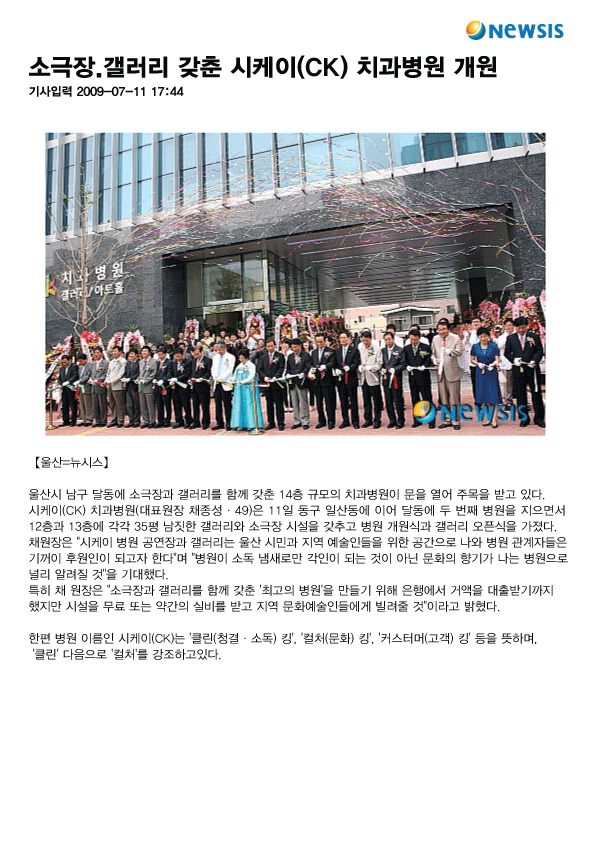 <뉴시스>소극장.갤러리 갖춘 시케이(CK) 치과병원 개원