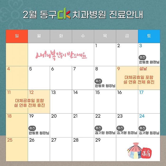 CK치과병원 동구점 2024년 2월 진료일정 안내드립니다.