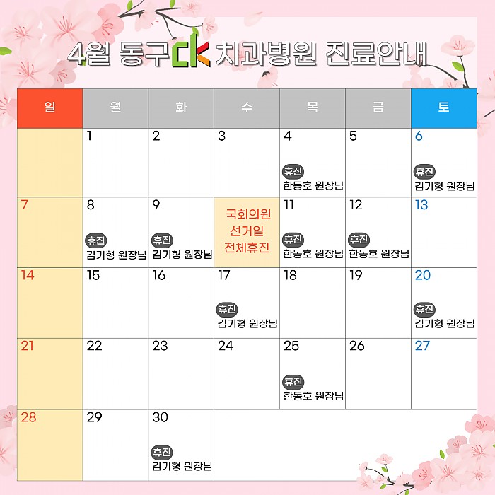 CK치과병원 동구점 2024년 4월 진료일정 안내드립니다.
