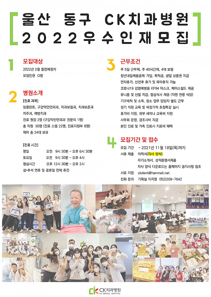 2022 동구CK치과병원 우수인재모집(신규채용)