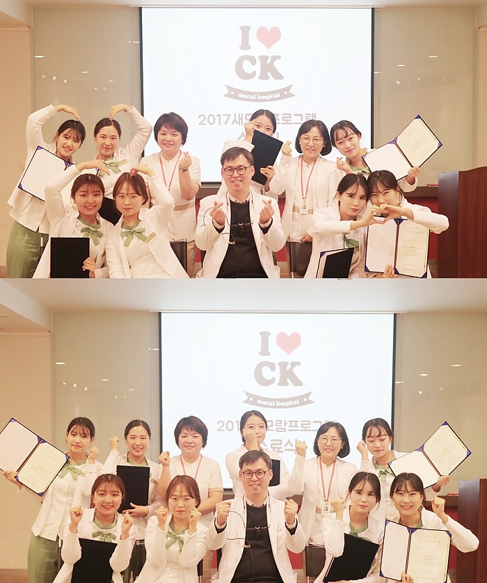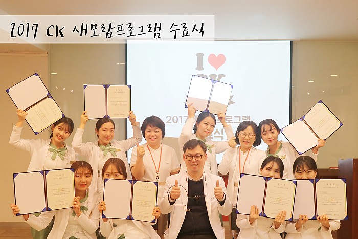 2월 3일 금요일부터 시작한 2017CK새모람프로그램!! 열 여섯시간의 교육과정을 무사히 마치고 오늘 마무리되었습니다!양이은, 유수경, 김다슬, 김소영, 김주영, 이솔희, 김소리, 김태언 선생님을 위해 김기형 병원장님께서 직접 수료증을 전달해주셨고, 조미영 진료부장님과 우보영 진료실장님께서도 오셔서 수료를 축하해주셨어요~