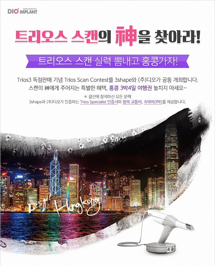 디오임플란트에서 주최, 진행되는 트리오스 스캔의 神 콘테스트는 전국에서 예선을 치루고, 본선 진출자에게는 덴마크 3shape와 디오에서 인증하는 '트리오스 스페셜리스트' 인증서가 수여된다고 하네요~