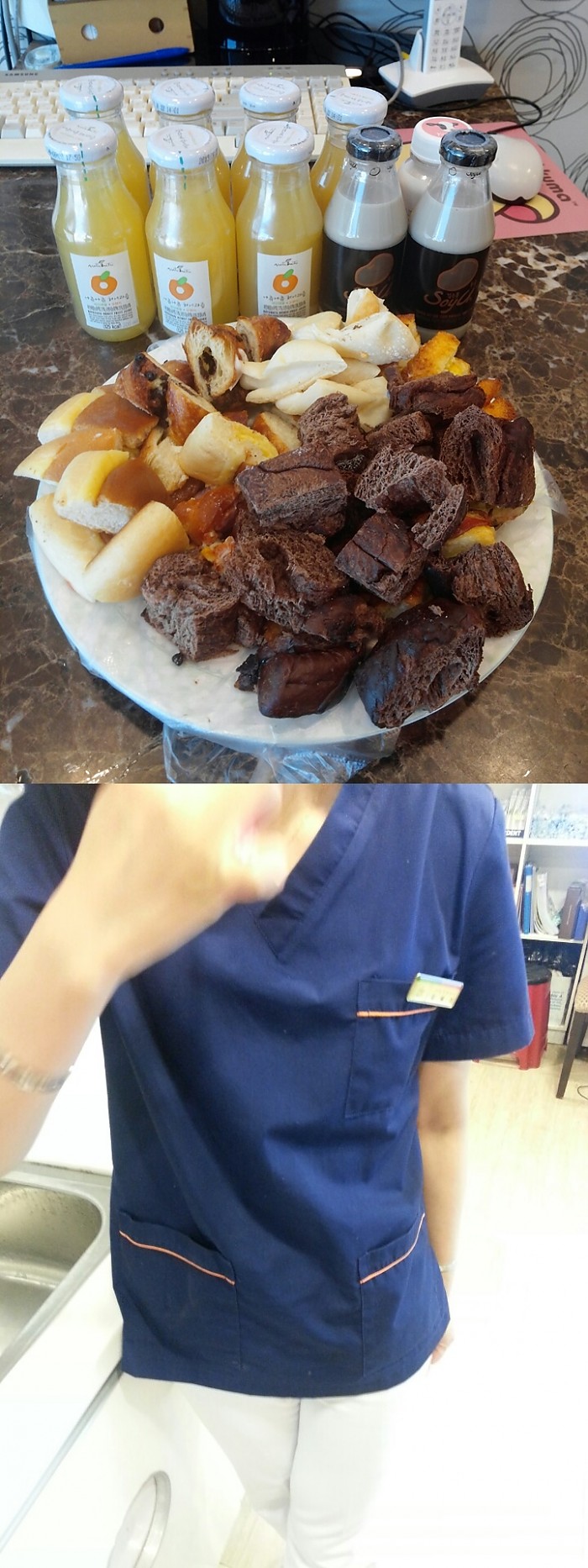 지난 금요일, 동구 ck치과병원 가족들은 보다 깨끗하고 위생적인 모습을 고객님께 선보이기 위해 열심히 대청소를 했습니다!! 교정과 선생님들의 열정적인 청소 현장!!그리고 그런 직원들을 위해 ck치과병원 병원장님께서 빵과 쥬스를 사주셨네요~ ^0^