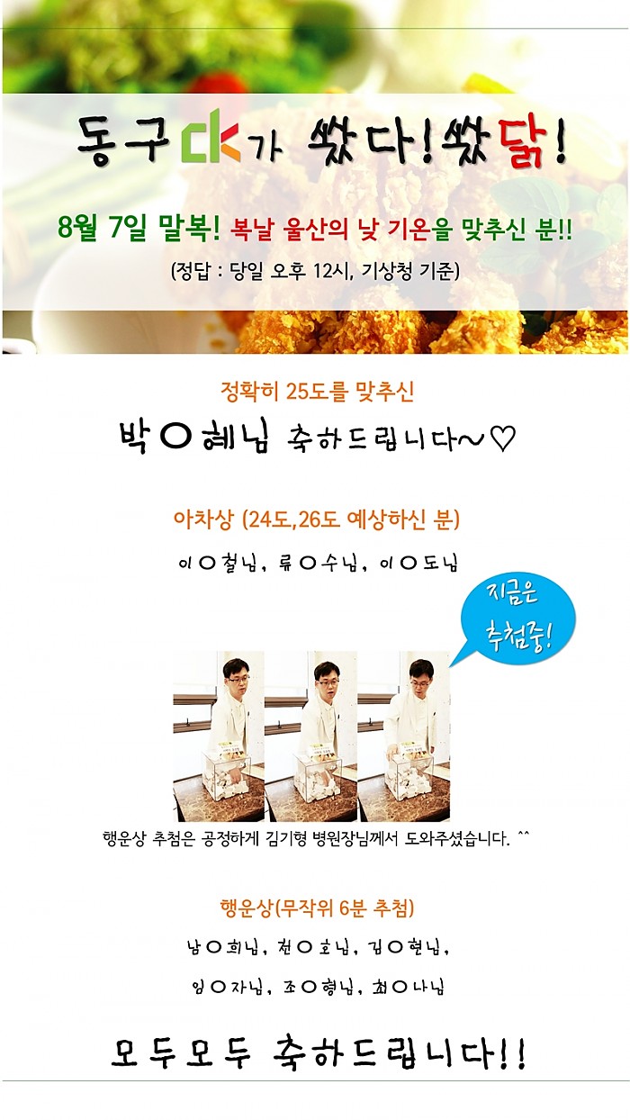★동구ck가 쐈다!쐈닭!동구ck치과병원 복날특집이벤트 결과발표★