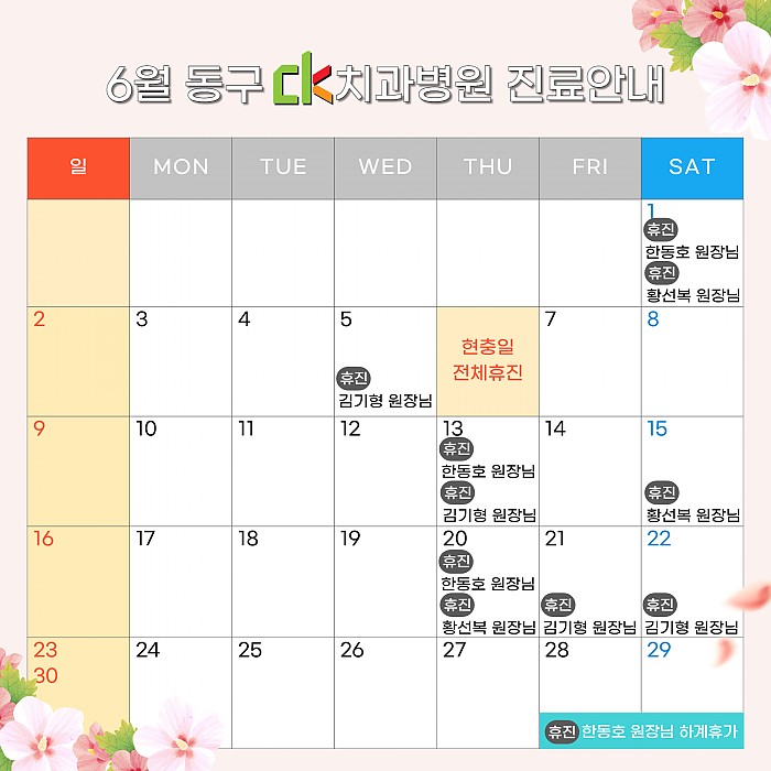 CK치과병원 동구점 2024년 6월 진료일정 안내드립니다.