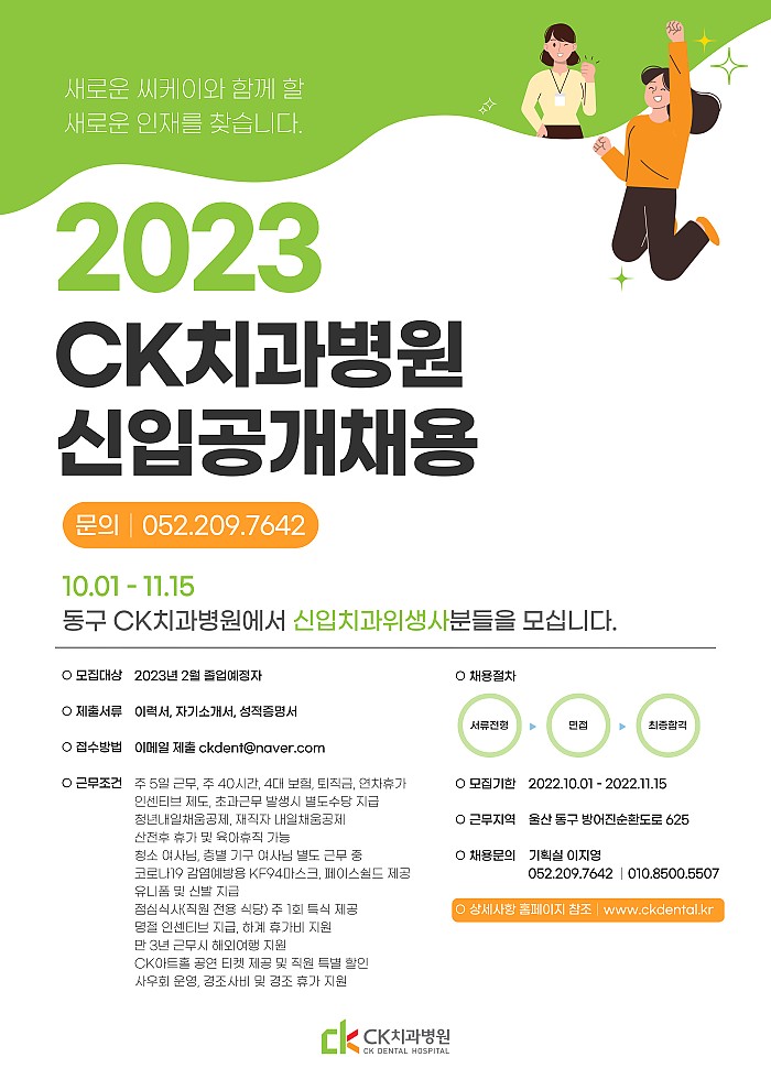 2023 동구CK치과병원 공개채용(경력, 신입)