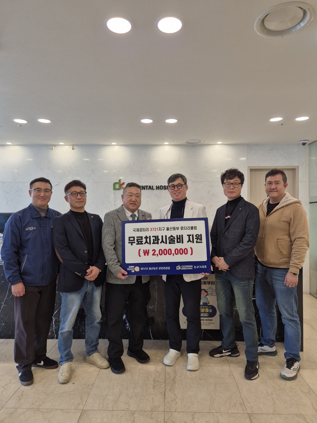 지난 2025년 12월 5일, 동구 CK치과병원에서 울산 동부로타리클럽 관계자분들과 함께 전달식을 진행했습니다. 이번 사업을 통해 울산 동구 지역의 취약계층 분들이 조금 더 편안하고 건강한 구강 환경을 갖추실 수 있도록 도움을 드릴 예정입니다.