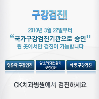 씨케이치과병원 2010년 국가구강검진기관 지정 2010-03-25 11:35:00 조회4418회 씨케이치과병원(동구 일산동)이 2010년 국가구강검진기관으로 지정되었습니다. 영유아구강검진, 학생구강검진, 일반/생애전환기 구강검진등을 실시하고 있습니다. 예약을 하시면 기다리는 불편없이 검진하실 수 있습니다. 목록