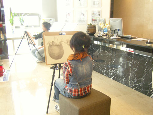 그림그리고 있는 학생들의 모습