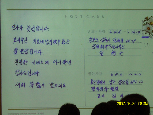 지식경영발표-김미영선생님 환자분에게 받은 엽서... 칭찬사례로 너무 멋진 엽서를 받았던 김미영팀장..
