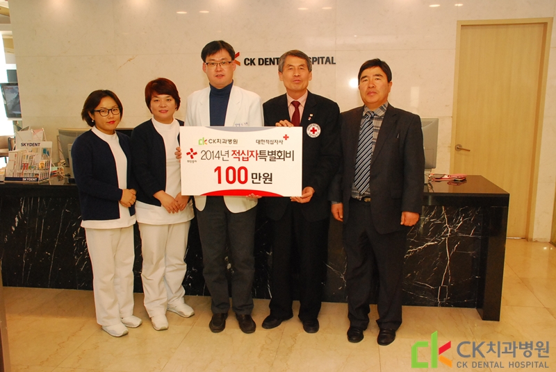 2014년도 적십자특별회비 전달식 2014-01-28 19:28:00 조회3480회 2014년 1월 28일, CK치과병원 동구점은 대한적십자회를 통해 적십자특별회비 1,000,000원을 전달했습니다. 이 날 전달식 이후 김기형 병원장을 비롯하여 대한적십자회측 대표분들과 함께 간단한 기념촬영이 이어졌습니다. 목록